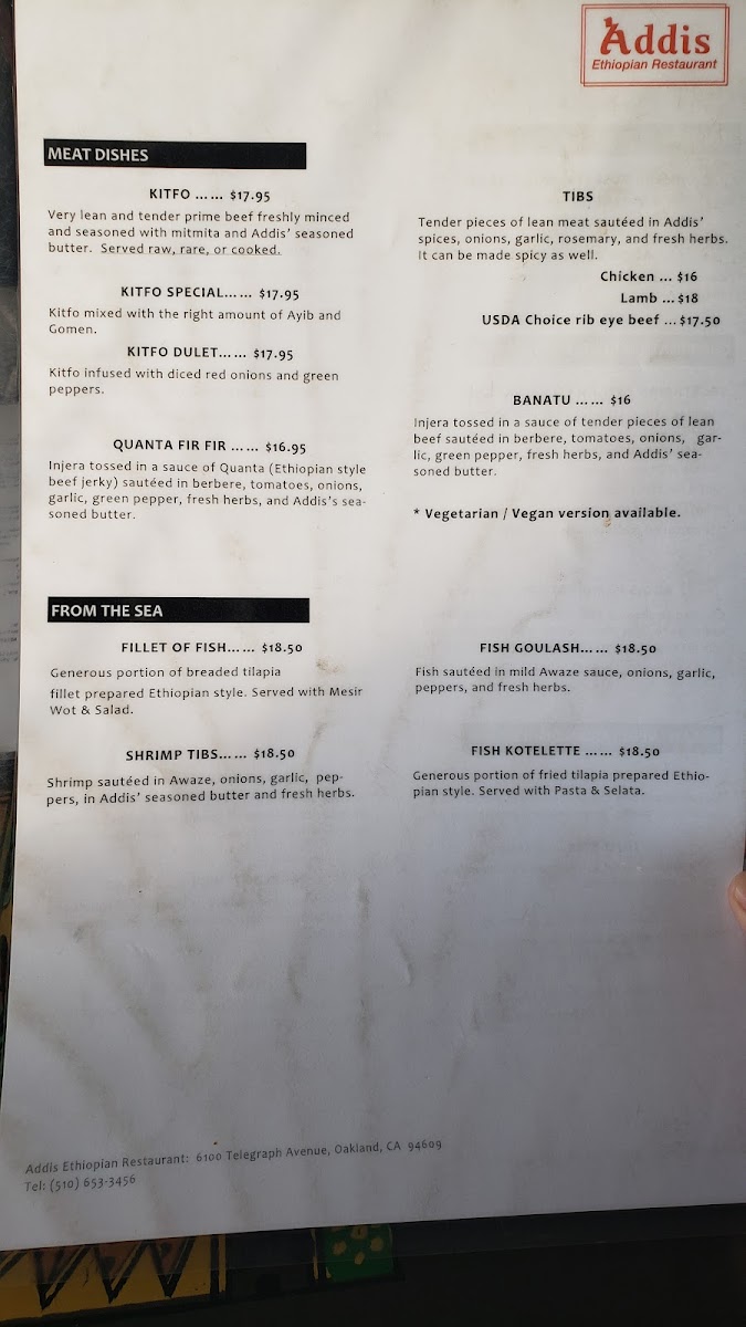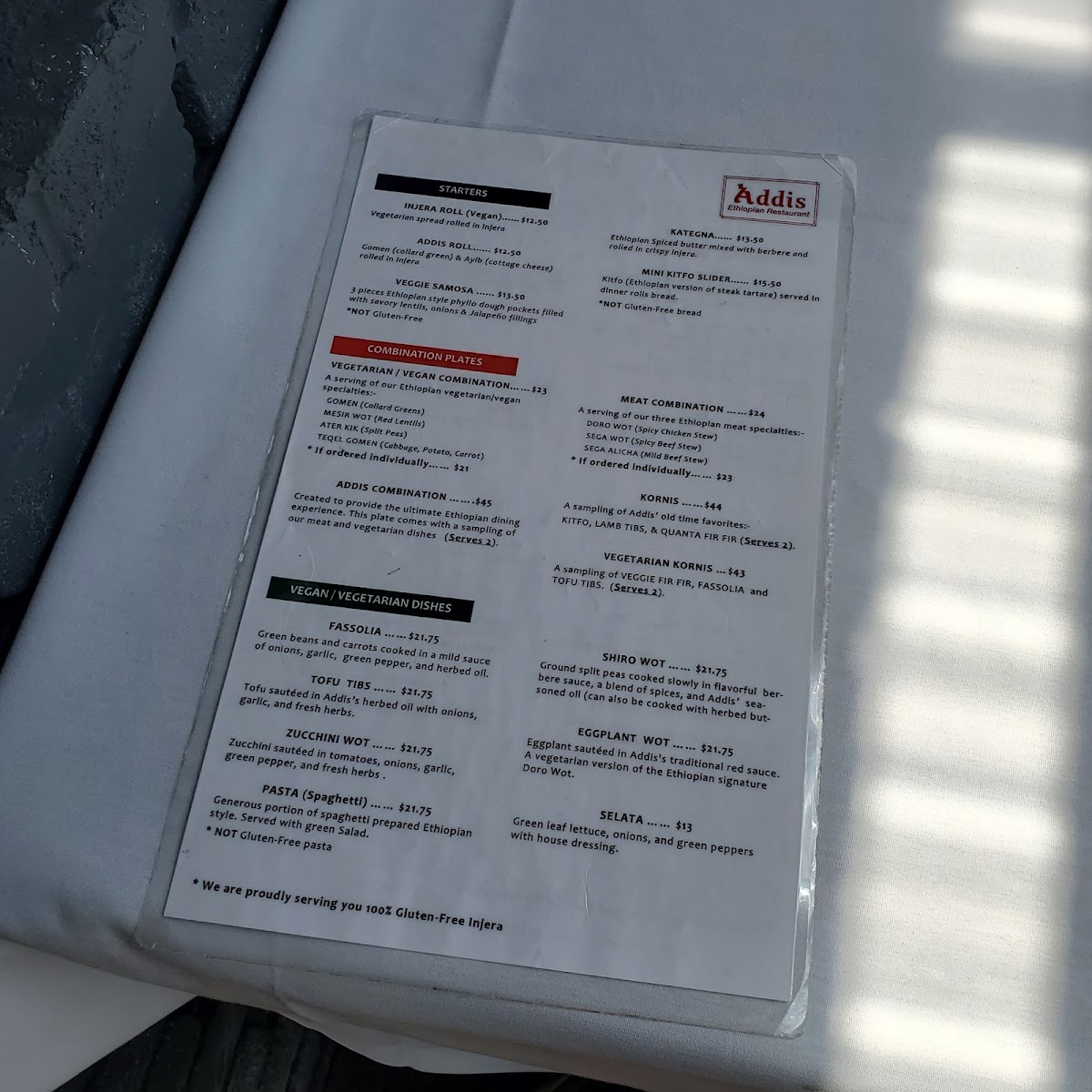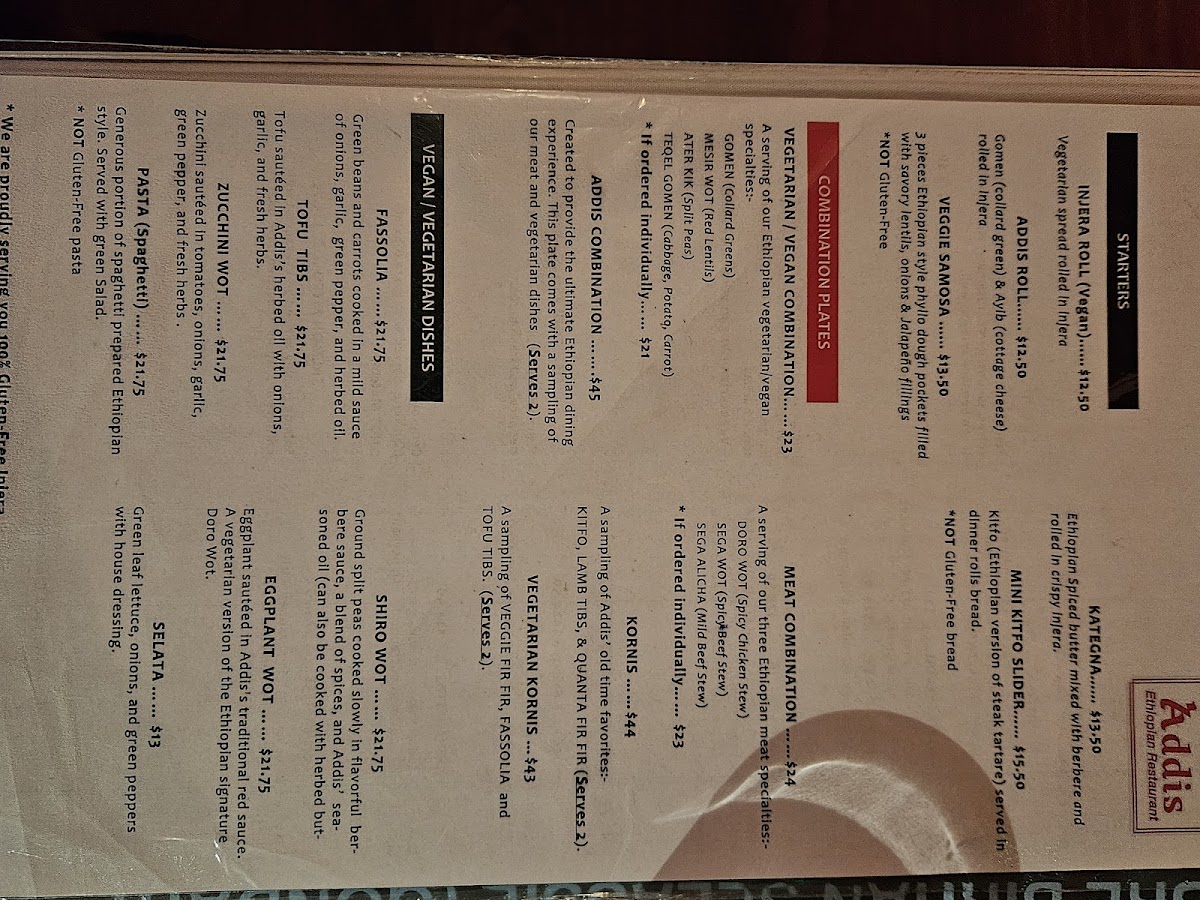 This menu easily fits a variety of dining moments—from a quiet midday break to a relaxed evening with friends. The warm, inviting atmosphere of Addis encourages diners to savor the detailed layers in each dish without rush, making every visit feel like a pleasant pause in the day.